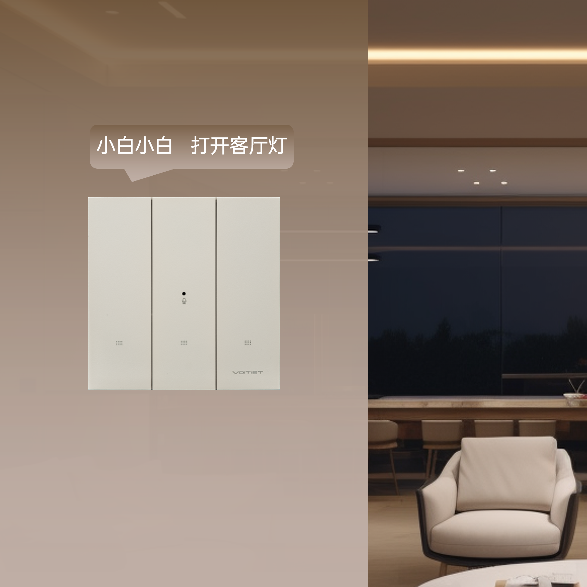 聆音人工智能開關,不用聯網、不用中控、無需網關和音箱,輕松實現燈光控制,內置芯片,本地控制,為您的隱私保駕護航!